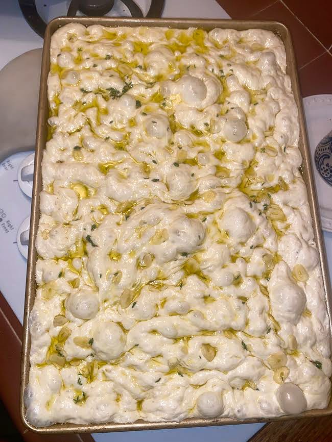 soooo i recently started making focaccia using Claire Saffitz recipe and its so delicious- the perfect balance of crunchy on the outside and soft on the inside! my first batch i made using my rosemary-infused oil(just stuck rosemary from my garden in olive oil and let it sit for 6 weeks) and damn best bread of my life. she calls for using bread flour instead of all-purpose flour and it really makes a difference. it wasn’t as heavy as the other times i made focaccia using ap. since the first time i’ve made a few batches with different toppings its so fun!!